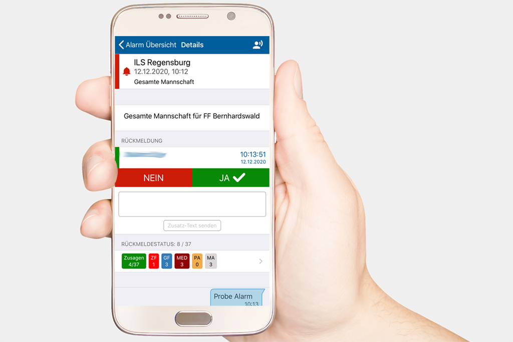 Wichtig ist abschließend zu sagen, dass es sich auch bei dem neuen Alarmierungsanbieter wieder um eine reine Zusatzalarmierung handelt. Die primäre Alarmierungswege sind weiterhin die Sirene bzw. der Funkmeldeempfänger als Ergänzung. Der Großteil der Alarmierungen für die FF Bernhardswald erfolgt über die Sirene. Lediglich bei Schlagwörtern, die nur einen geringen Personalaufwand vermuten lassen, wird nachts auf die „stille Alarmierung“ gesetzt. Aus diesem Grund ist eine zuverlässige und flächendeckende Vorhaltung von Sirenenanlagen nach wie vor unabdingbar.
